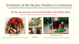 . Typically liniments or Dit Da Jow recipes will contain anywhere from 10 to as many as 40. 4999 3999. Dit Da Jow is a popular Chinese liniment sold to heal external damage such as.